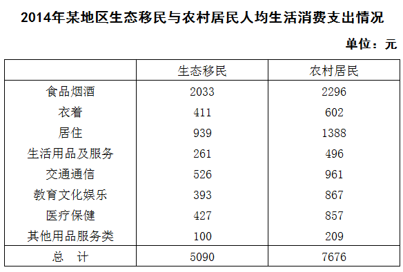 C、2014年该地区生态移民人均交通通信支出占人均总生活消费支出的10%以上