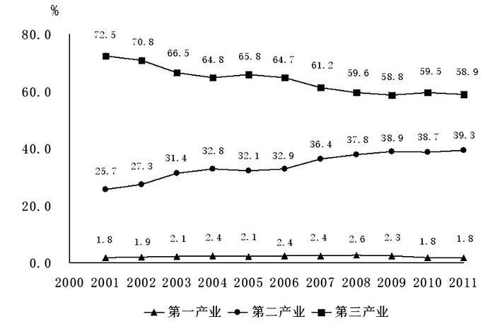 图2:2001年-2011年部分行业市场用人需求比重变化