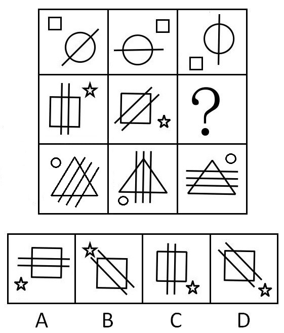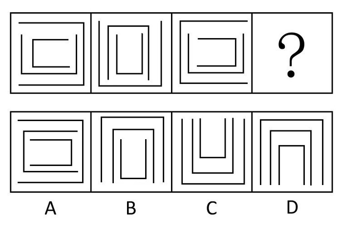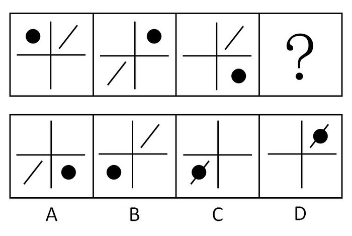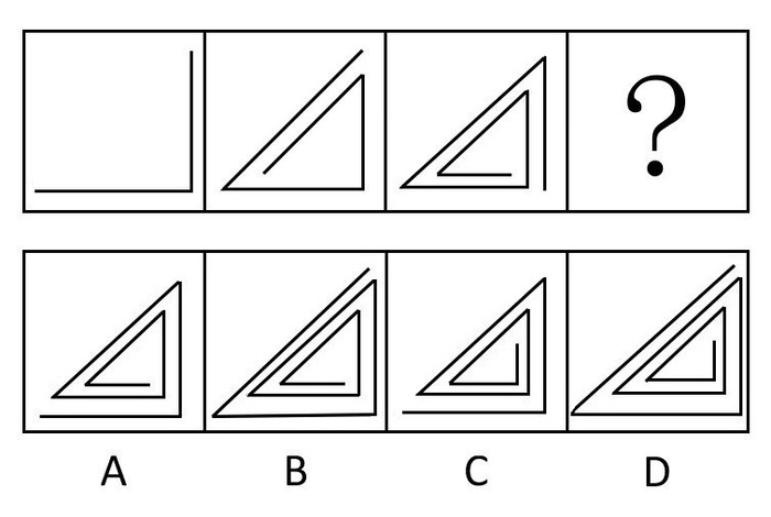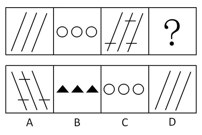 请从右边四个图形中选择一个填入左边图形中的问号处。