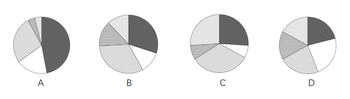 能够正确描述2015年新能源汽车产业五种专利申请数占比的统计图是: