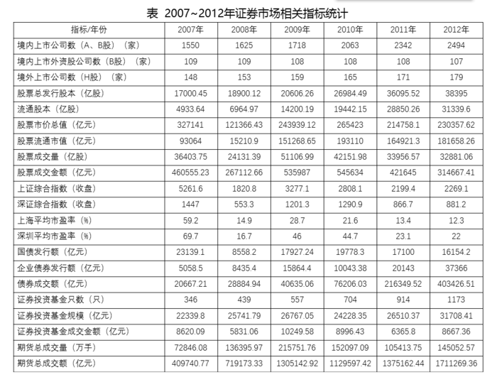 下列关于2007~2012年证券市场的表述,错误的是________。