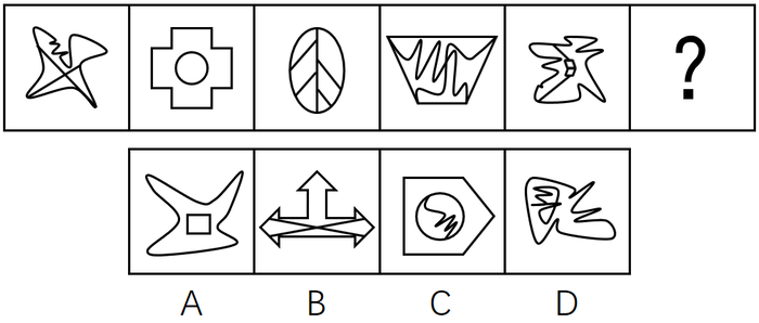 从所给的四个选项中,选出最合适的一个填入问号处,使之呈现一定的规律性。