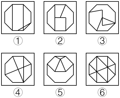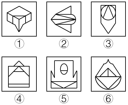 把下面的六个图形分为两类,使每一类图形都有各自的共同特征或规律,分类正确的一项是: