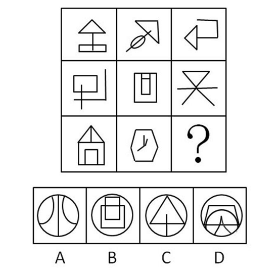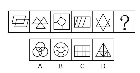 请从所给的四个选项中选择最合适的一个填入问号处,使之呈现一定的规律。