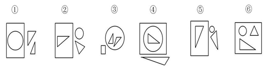 把下面的六个图形分成两类,使每一类图形都有各自的共同特征或规律,分类正确的一项是: