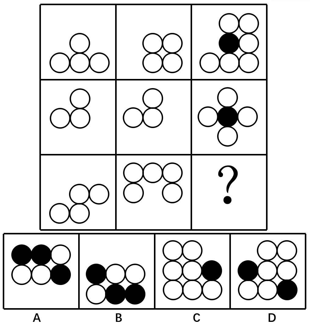 请选择最适合的一项填入问号处,使之符合整个图形的变化规律。( )