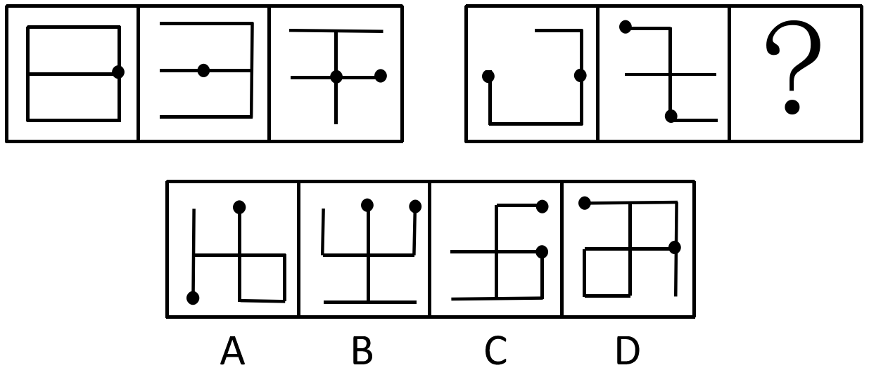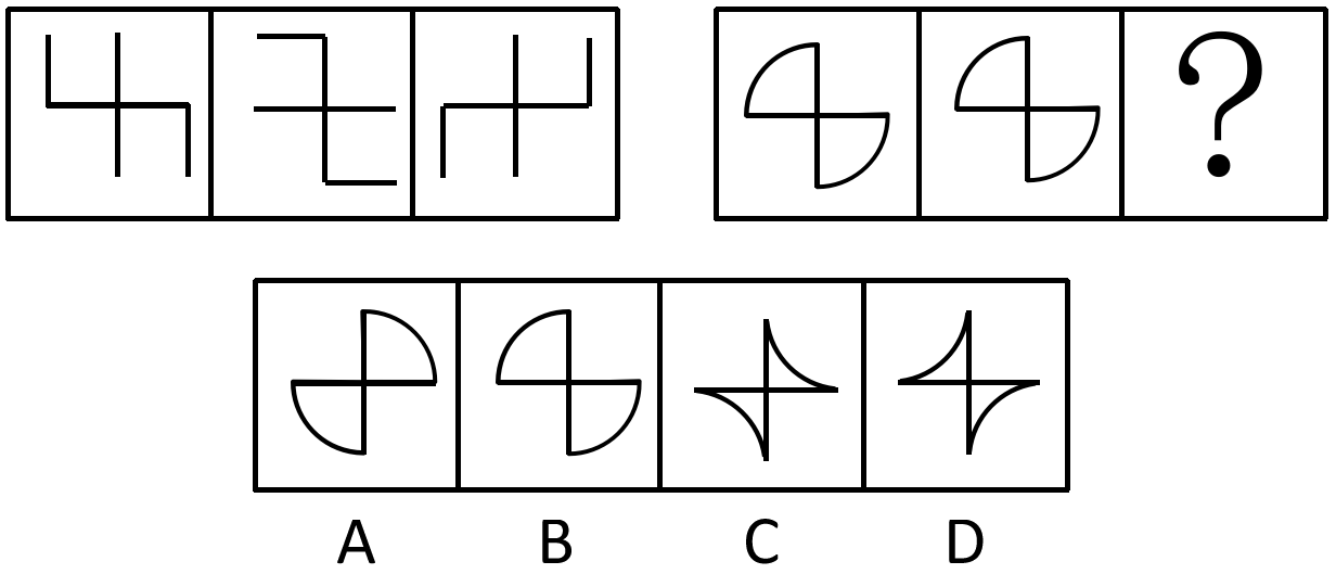 请选择最适合的一项填入问号处,使右边图形的变化规律与左边图形一致。( )