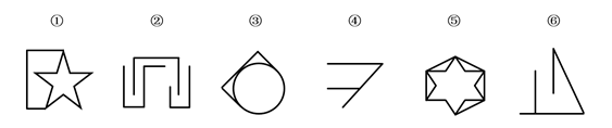 把下面的六个图形分成两类,使每一类图形都有各自的共同特征或规律,分类正确的一项是( )。