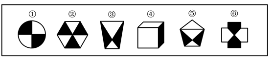 把下面的六个图形分为两类,使每一类图形都有各自的共同特征或规律,分类正确的一项是:
