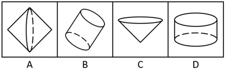 将一个空心圆柱体斜切,得到下图所示物体。不可能是这一物体截面的是( )。