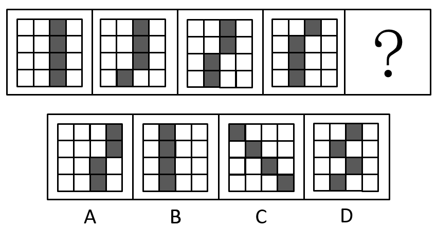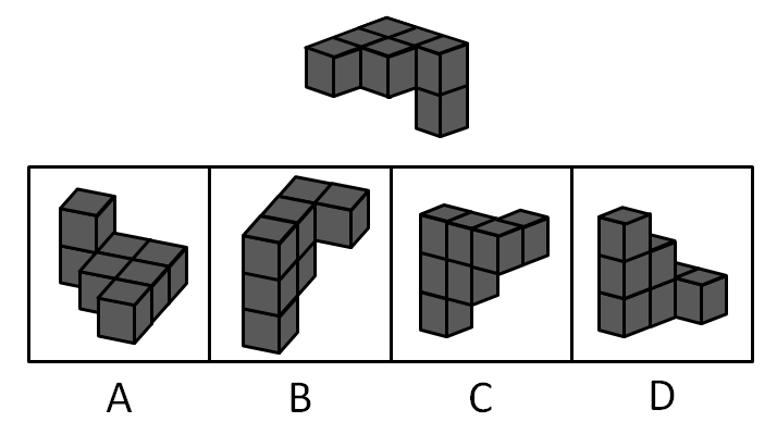 如图所示,四个相同的等腰直角三角形,不可能组成的图形是( )。