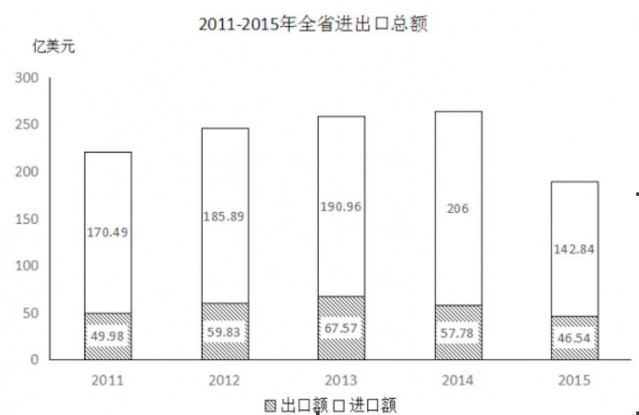 下面是某省的对外贸易进出口总额的部分数据资料,请根据图表回答下述问题: