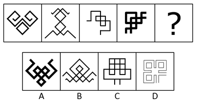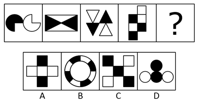 从所给的四个选项中,选择最合适的一个填入问号处,使之呈现一定的规律性: