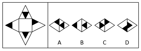 下图左边给定的是纸盒的外表面,右边哪一项能由它折叠而成: