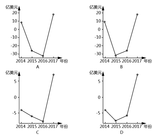 以下可以准确表现2014-2017年中国东北地区与西亚地区进口额同比增减变化情况的折线图是
