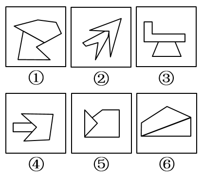 把下面的六个图形分为两组,使每组图形都有各自的共同特征或规律的是( )。