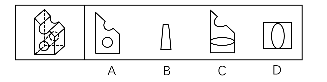 左图为某一零件的立体图形,右边哪一项不属于该立体图形的截面图?