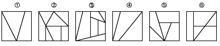 把下面的六个图形分为两类,使每一类图形都有各自的共同特征或规律,分类正确的一项是( )。