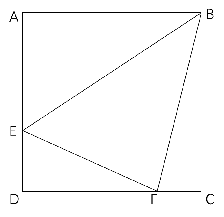 如下图,有正方形ABCD,点E和点F分别在正方形AD和DC边上,。正方形ABCD的面积与三角形EFB的面积之比是12:5,则