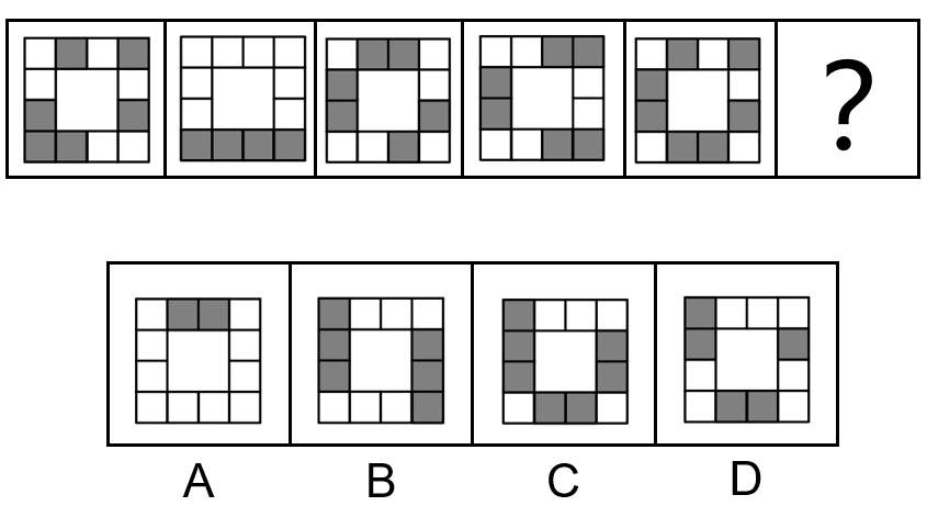 从所给四个选项中,选择最合适的一个填入问号处,使之呈现一定的规律性。