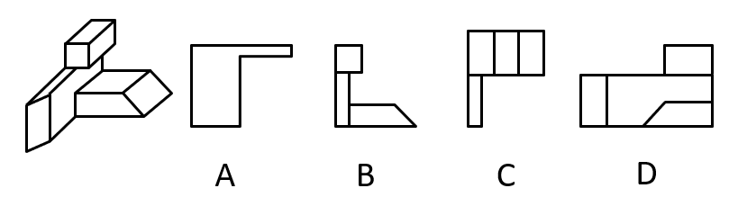 左图为给定的多面体,从任一角度观看,右边哪项可能是该多面体的视图?