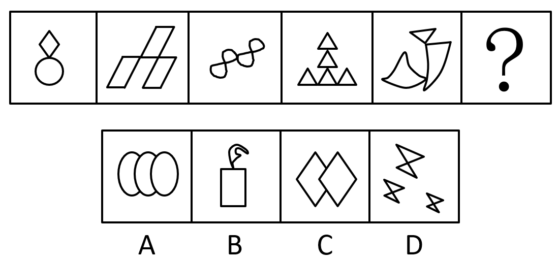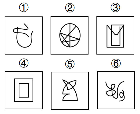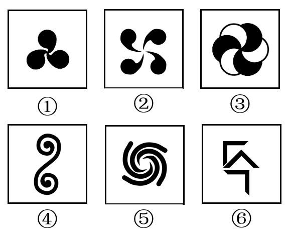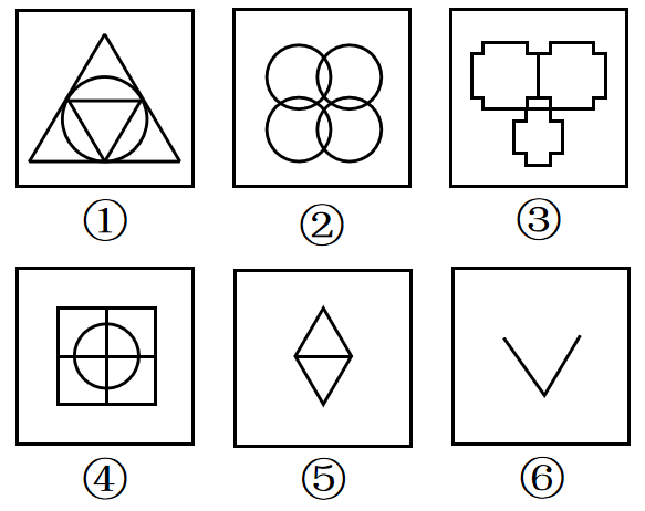 把下面的六个图形分为两类,使每一类图形都有各自的共同特征或规律,分类正确的一项是: