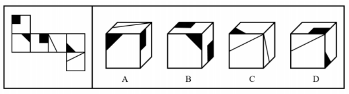 左边给定的是右边某一正方体的外表面展开图,下面哪一项能由它折叠而成?( )