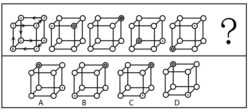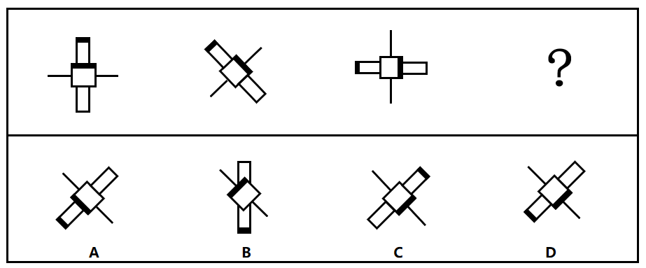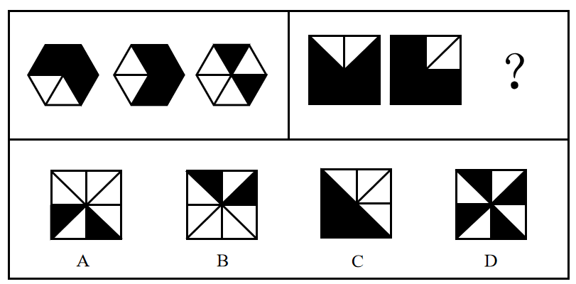 从所给的四个选项中,选择最合适的一个填入问号处,使之呈现一定的规律性: