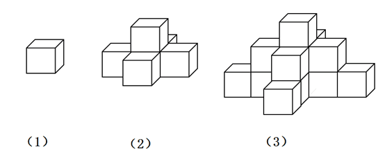 有若干个相同的小正方体木块,按图(1)、(2)、(3)的叠放规律摆放,则到第七个图时,第七个图中小正方体木块总数应为 个。
