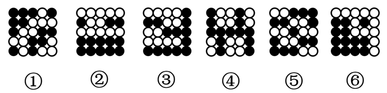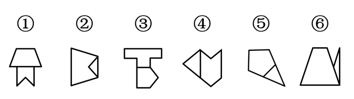 把下面的六个图形分为两类,使每一类图形都有各自的共同特征或规律,分类正确的一项是: