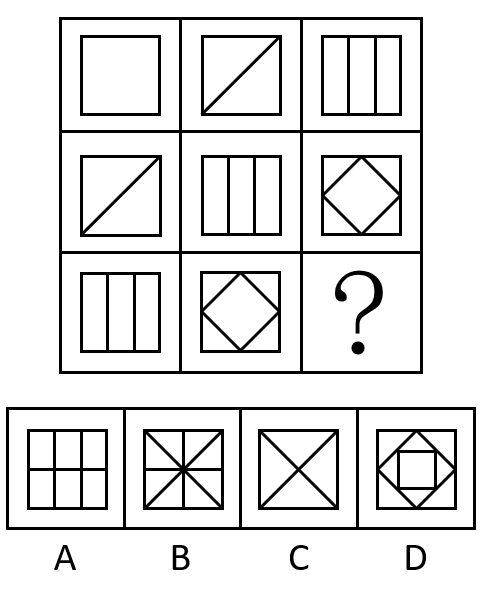 从所给的四个选项中,选择最合适的一个填入问号处,使下列正方形图形呈现一定的规律性: