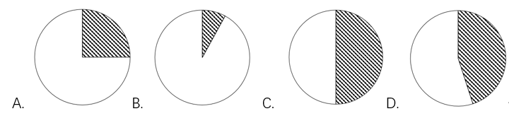 若阴影部分代表大专及以上学历党员人数,那么下列哪幅图最能反映截至2019年12月31日大专及以上学历党员占党员总数的比例?
