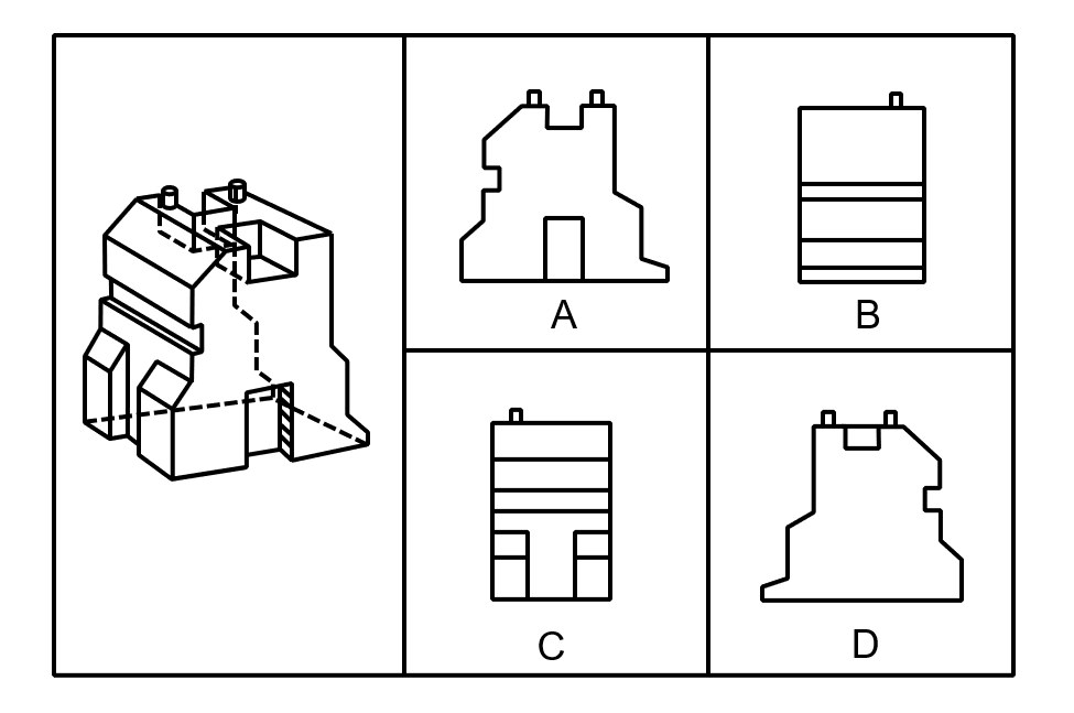 下图右侧四个选项中,哪一个不是左侧零件的立面?