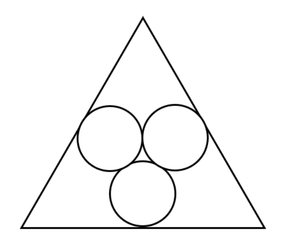 某市江滨有一处边长为50米的等边三角形广场。广场里设计有三个大小相等的圆环鹅卵石道路供市民散步。如下图所示,各圆相切,各圆与三角形也相切。问沿三个圆环外围石道(不含圆切点之间的弧)散步一圈约为多少米?