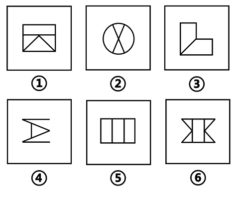 把下面的六个图形分为两类,使每一类图形都有各自的共同特征或规律,分类正确的一项是: