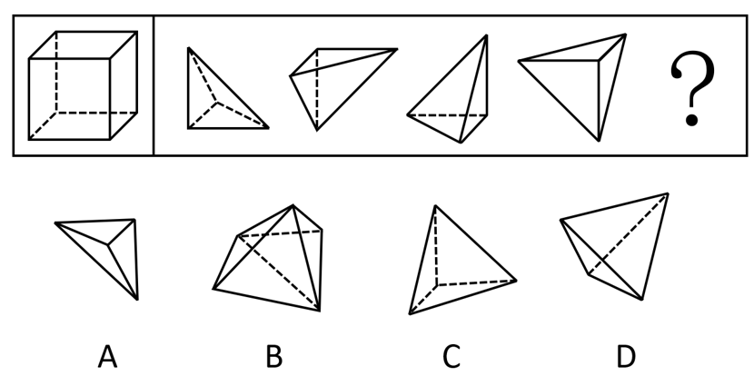 从所给的四个选项中,选择最合适的一个填入问号处,使之呈现一定的规律性:
