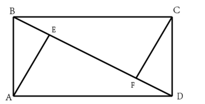 一块长方形土地ABCD中绘有3条会侧线如图所示。已知AE和CF垂直于对角线BD,AE、EF分别长8米和12米。问整块土地的面积为多少平方米?