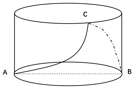 一个不计厚度的圆柱型无盖透明塑料桶,桶高2.5分米,底面周长为24分米,AB为底面直径。在塑料桶内壁桶底的B处有一只蚊子,此时,一只壁虎正好在塑料桶外壁的A处,则壁虎从外壁A处爬到内壁B处吃到蚊子所爬过的最短路径长约为: