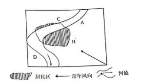 根据城市规划原理,下图中A区域及D区域最适合建设( )。