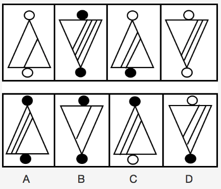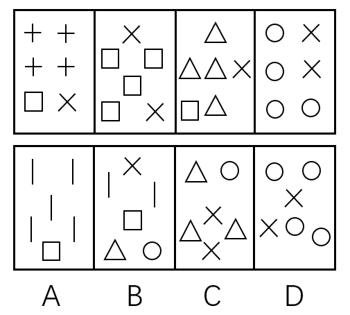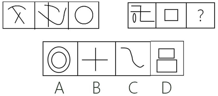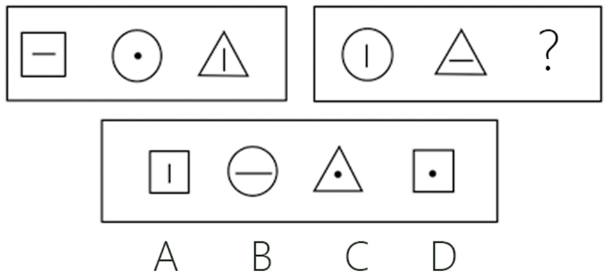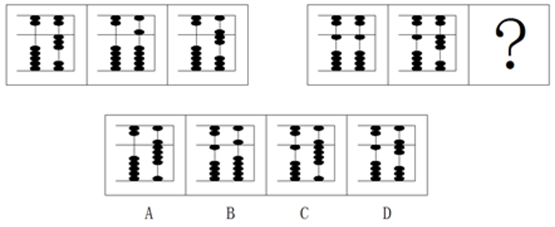 每道试题包含两套图形和可供选择的四个图形,这两套图形具有某种相似性,也存在某种差异。要求你从四个选项中选择你认为最适合取代问号的一个,正确的答案应不仅使两套图形表现出最大的相似性,而且使第二套图形也表现出自己的特征。
