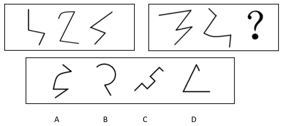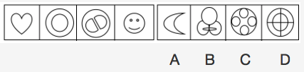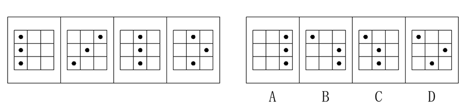 每道试题左边的四个图形呈现一定的规律性,右边也有四个可供选择的图形,要求你从右边的四个图形中,选出最适合的一个图形,此图形与左边的四个图形存在一致的规律,则该图形即为正确答案。