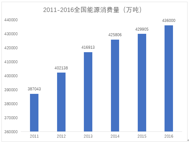 2016年,全国能源消费总量(万吨标准煤)436000万吨,同比增长;煤炭消费量270320万吨,同比下降