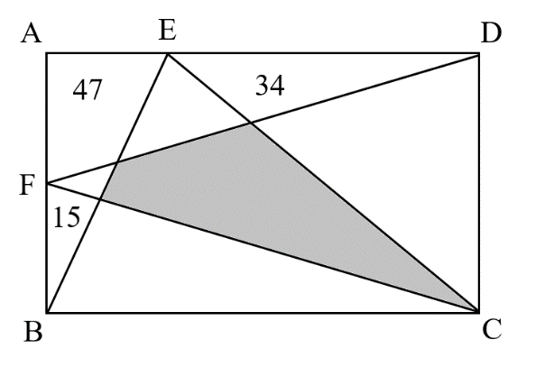 在右图中,长方形内画了一些直线,已知边上有三块面积分别是15,47,34,那么图中阴影部分的面积是多少?( )