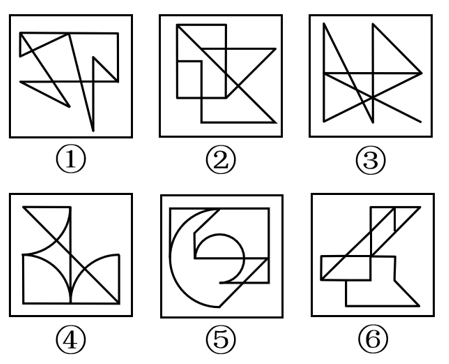 把下面的六个图形分为两类,使每一类图形都有各自的共同特征或规律,分类正确的一项是: