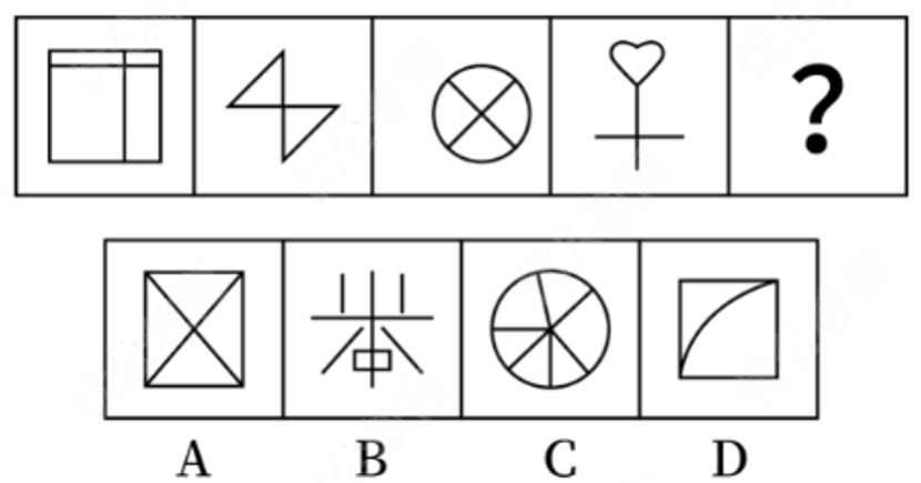 从所给的四个选项中,选择最合适的一个填入问号处,使之呈现一定的规律性( )。