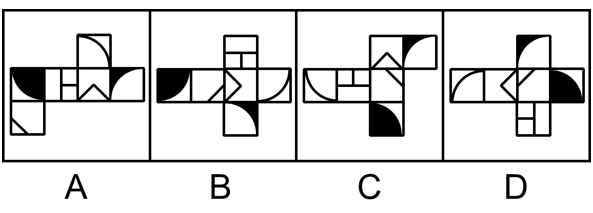 下列选项为4个正方体纸盒的外表面展开图,其中哪一个折叠成的纸盒与其他三个不一样?