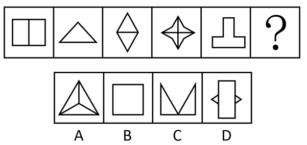 从所给的四个选项中,选择最合适的一个填入问号处,使之呈现一定的规律性: