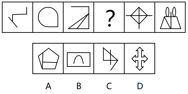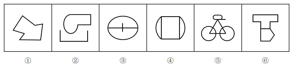 把下面的六个小图形分为两类,使每一类图形都有各自的共同特征或规律,分类正确的一项是( )。