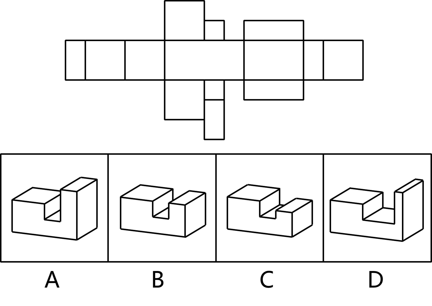 将下面的图形折叠后,将获得的图形是( )。