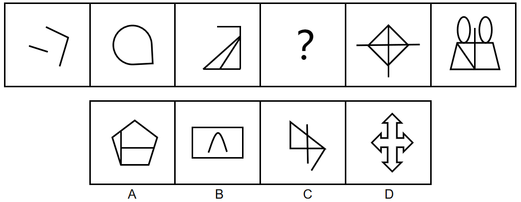 把下面的六个小图形分为两类,使每一类图形都有各自的共同特征或规律,分类正确的一项是( )。